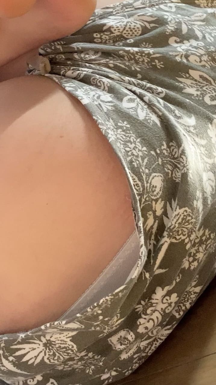 ショートパンツを履いた妻が脚を上げ、お尻をぐいーっと突き出していやらしい格好になっていたので動画に収めました。 案の定、ショートパンツの隙間からパンチラ。ドアップで撮影しています。