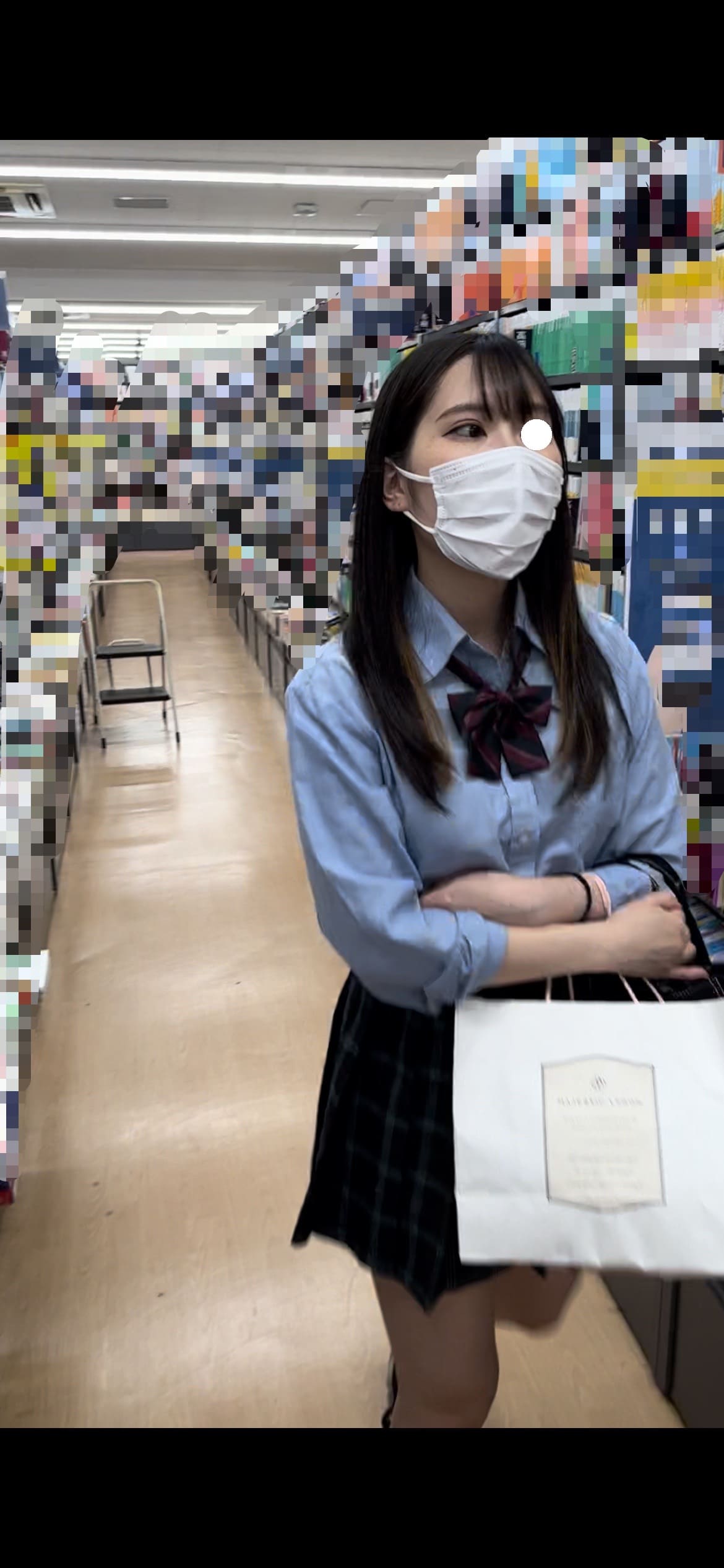 清楚目な見た目からは想像できない位エッチな下着です。しばらく鞄カメラでの逆さ撮りを堪能した後に少し屈んだタイミングで手持ちカメラをぶち込みました。